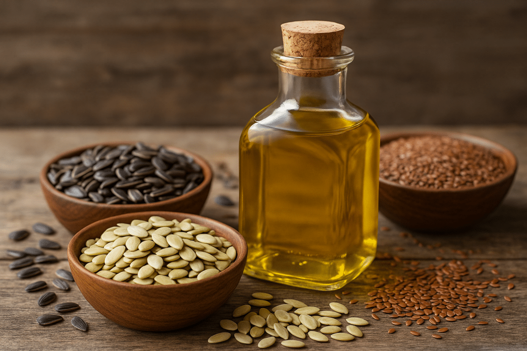 Con “oli di semi” si indicano oli estratti da semi vegetali (es. girasole, soia, mais, colza/canola, cartamo, vinacciolo). Sono tipicamente ricchi di acidi grassi insaturi (mono- e poli-insaturi: MUFA/PUFA), fra cui acido linoleico (ω-6) e, in alcuni casi, acido α-linolenico (ω-3). Le linee guida OMS raccomandano che la quota di grassi nella dieta provenga principalmente da insaturi, limitando saturi e eliminando i grassi trans industriali. WHO+1